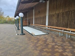 Ideal als Teamevent oder für private Gruppen. Die Bahn ist überdacht und gut ausgeleuchtet. Sitzmöglichkeiten sind ebenfalls vorhanden und wenn es mal kälter werden sollte, stehen Wärmestrahler zur Verfügung. Einer spannenden Runde Eisstockschießen steht also nichts im Wege!
